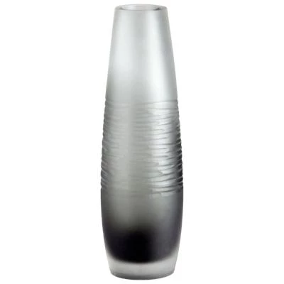 This beautiful smoky grey vase is neutral and slim in stature. A rippled band is etched into its center, which makes it very unique. Display as is or add flowers for a pop of color; small, medium and large sizes available.