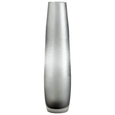 This beautiful smoky grey vase is neutral and slim in stature. Aย rippled band is etched into its center, which makes it very unique. Display as is or add flowers for a pop of color; small, medium and large sizes available.