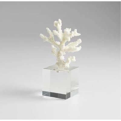 Textured branches of coral reach in every direction from this charming coral sculpture. Perfect for an ocean enthusiast, this small sculpture features a white finish and rests on a crystal cube base that glitters on a mantel or desktop.
