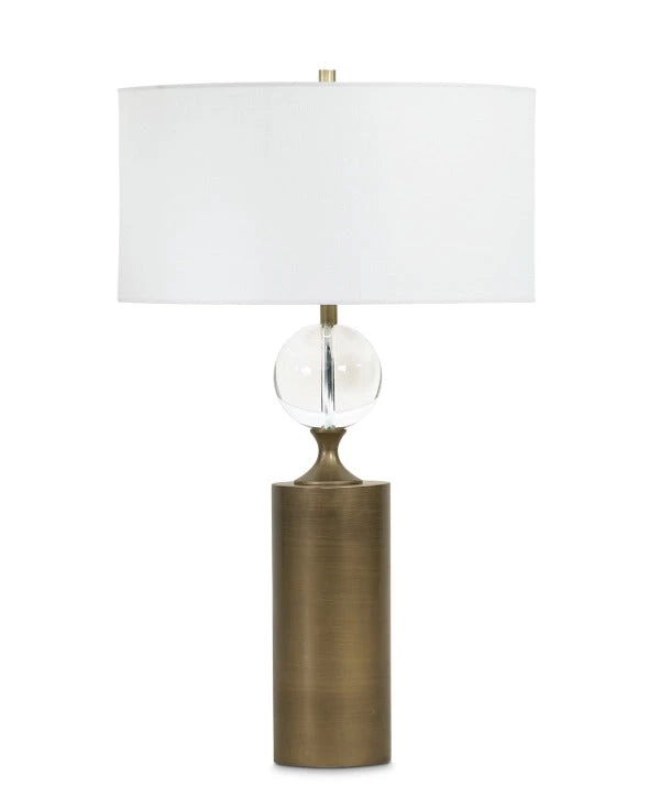 Look into our crystal ball with this table lamp. A crystal sphere sits at the top, while a complementary Antique Brass body acts almost as a pedestal. The play on shapes and materials makes this lamp a unique stunner, perfect as a show piece on a living room end table.