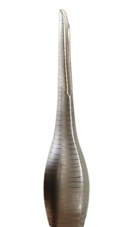 This ceramic covered vase in a matte platinum glaze adds a touch of luxe to any space.