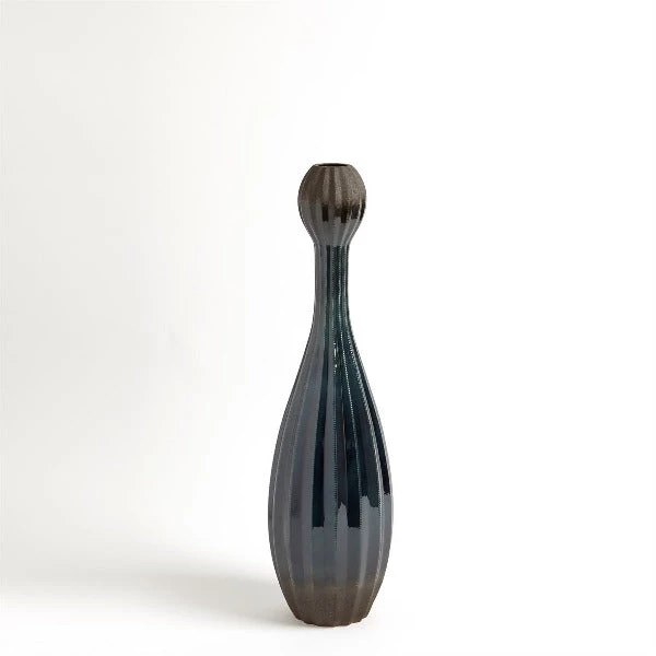 Fluted ribs on these Portuguese ceramic vessels show off the deep blue reactive glaze brilliantly.
