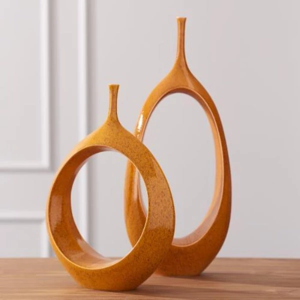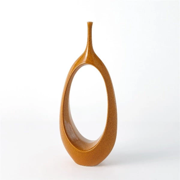 Layer the Open Oval Ring Vase anywhere you need bold pop of color. The lithe silhouette makes grouping them easy and the zesty shade of orange is certainly eye-catching.
