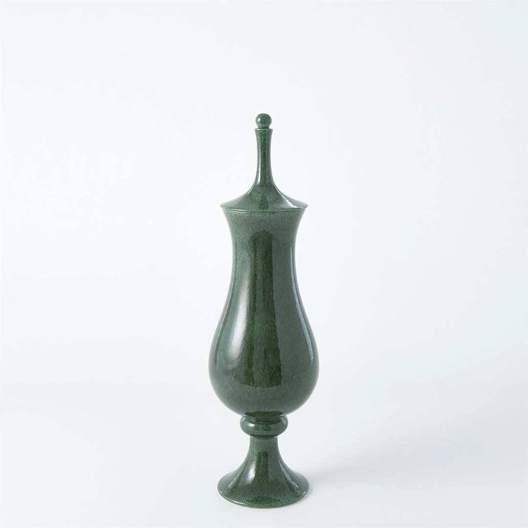 Soft curves and bold color steal the show on our Tower Jars. The vibrant green glaze highlights the comely shaped ceramic jar.