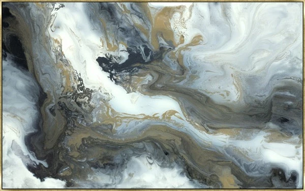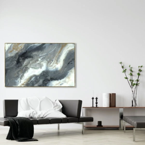 This hand-embellished custom art makes a statement with its’ deep blue and gray tones and gold crystal-like marbles. Available in multiple sizes.