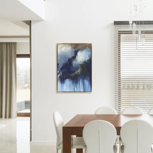 This hand-embellished art piece is a great option for adding a touch of cool-hued modern style to any wall. Β Add wow to your walls with this art and enhance your space!Β Comes ready to hang. Made in USA.
