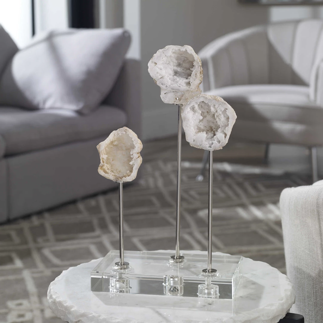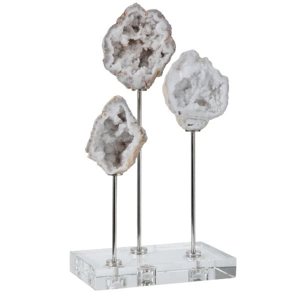 Elegant natural stones are set atop crystal bases with polished nickel plated accents.